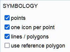 When you click on the colored icon, the polygon boundary is draw with a thicker line,