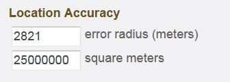 - The publicly viewable value of Error radius is set to 2821 meters.