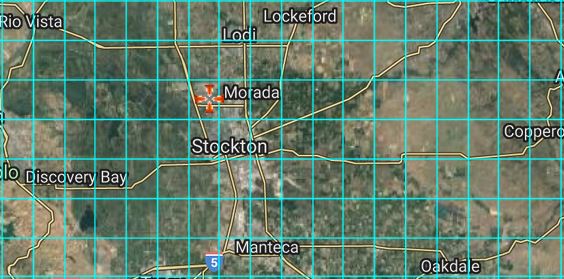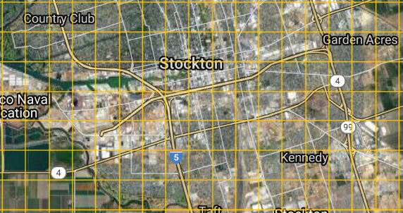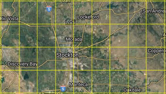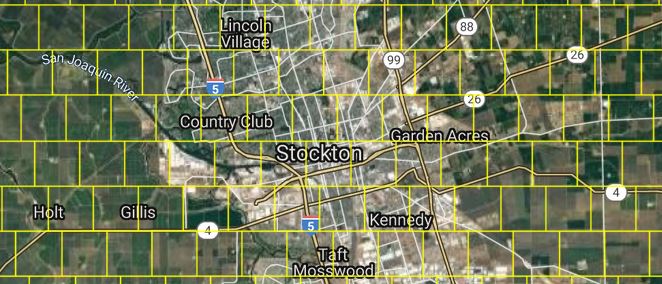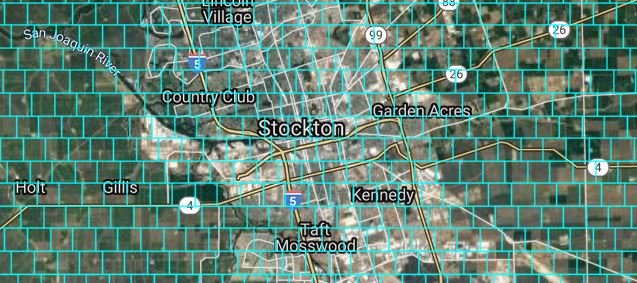 Using a statewide projectiion like Teale Albers is definitely the industry standard approach. The fact that cells have an equal area is a big advantage: five grid cells in Del Norte County will have the same area as five grid cells in San Diego County. (Mountainous terrain will throw this equality off, but that is true for any gridding technique.) The disadvantage of using a gridding technique based on the Teale Albers projection is that it is not applicable outside of California. (Arguably Teale Albers would work in Nevada -- see the graphic above -- but it is not used in Nevada.) Each state has its own preferred projections with good reason -- see Projections in States other than California below. |